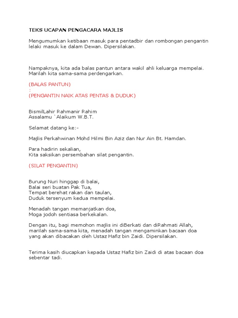 Teks Ucapan Mc Mjlis Kawin Pdf